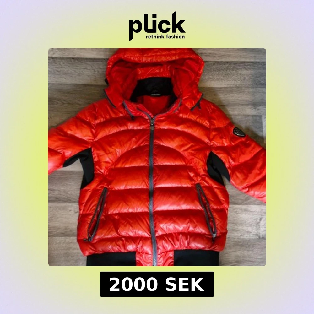 Snygg röd pufferjacka från EA7 Emporio Armani med svart detalj på sidorna och huva. Jackan har två dragkedjeförsedda fickor, emblem på ärmen och en glansig finish. Perfekt för kalla dagar när du vill sticka ut med en bold look.