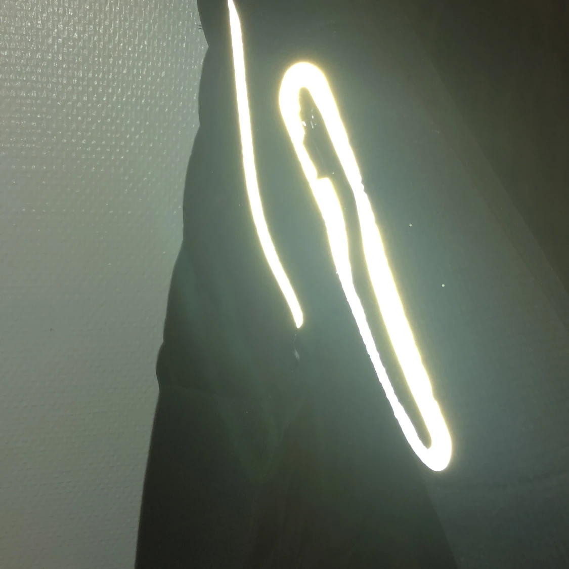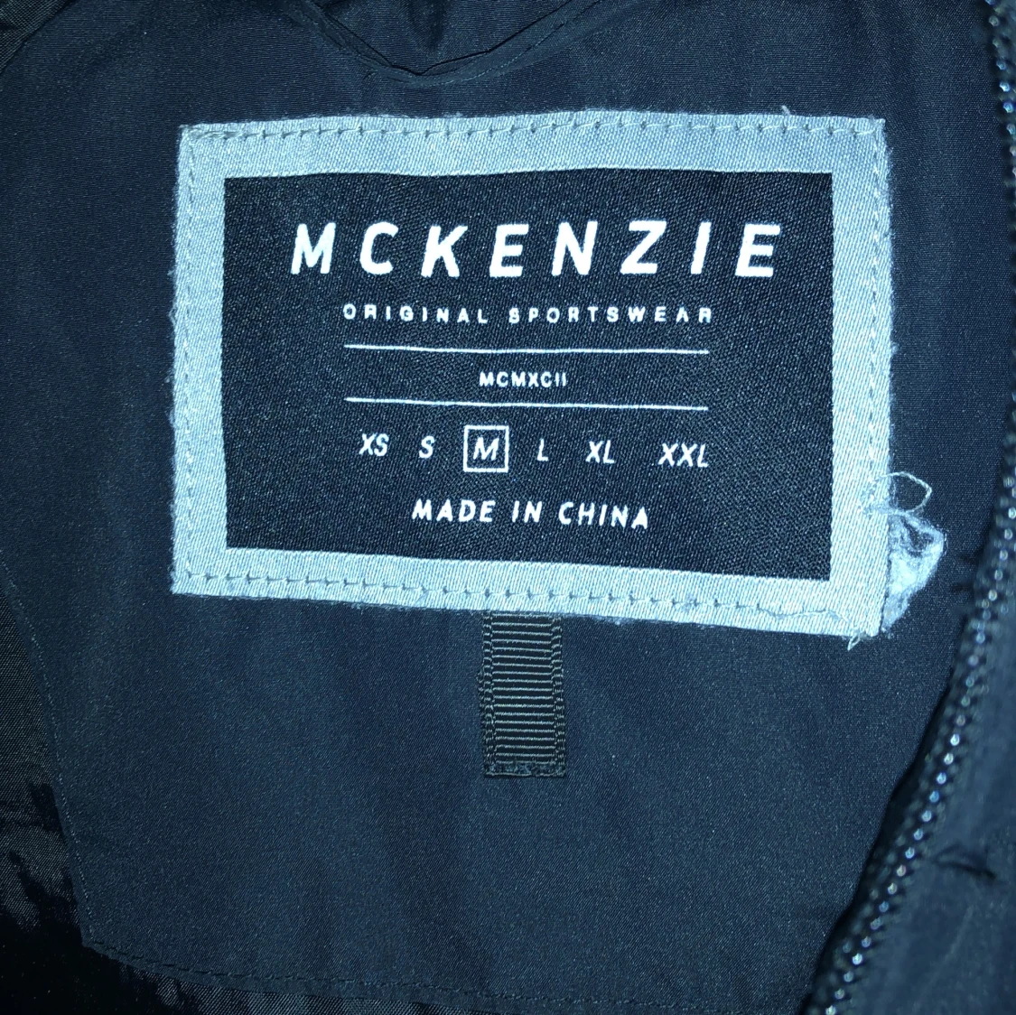 Svart pufferjacka från McKenzie med huva och reflekterande detaljer på axlar och ärmar. Jackan har quiltad framsida, dragkedja och långärmad design. Perfekt för dig som gillar sportig stil och vill synas i mörkret. Vänster fickan har dock ett hål som man kan se i sista bilden.