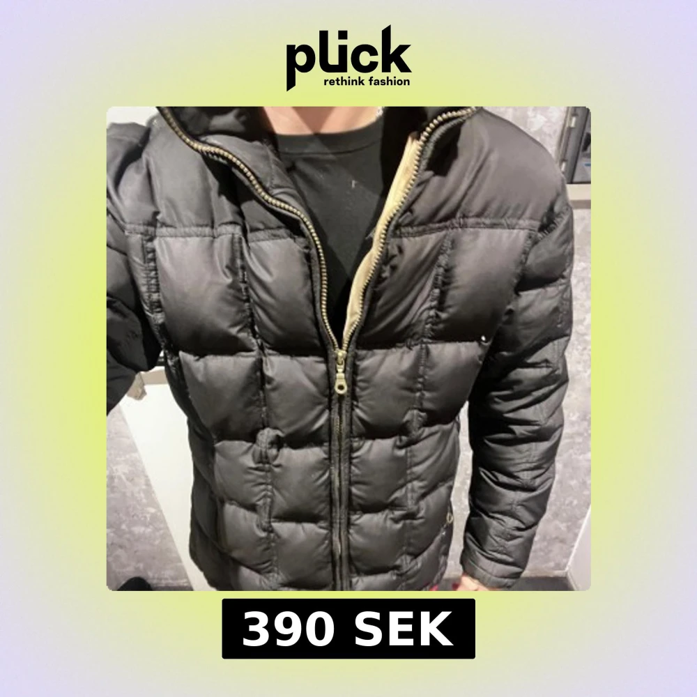 Säljer en svart pufferjacka från Camera med dragkedja och hög krage. Jackan har en quiltad design och är perfekt för kyligare väder. Den har en klassisk look och är lätt att matcha med olika outfits.