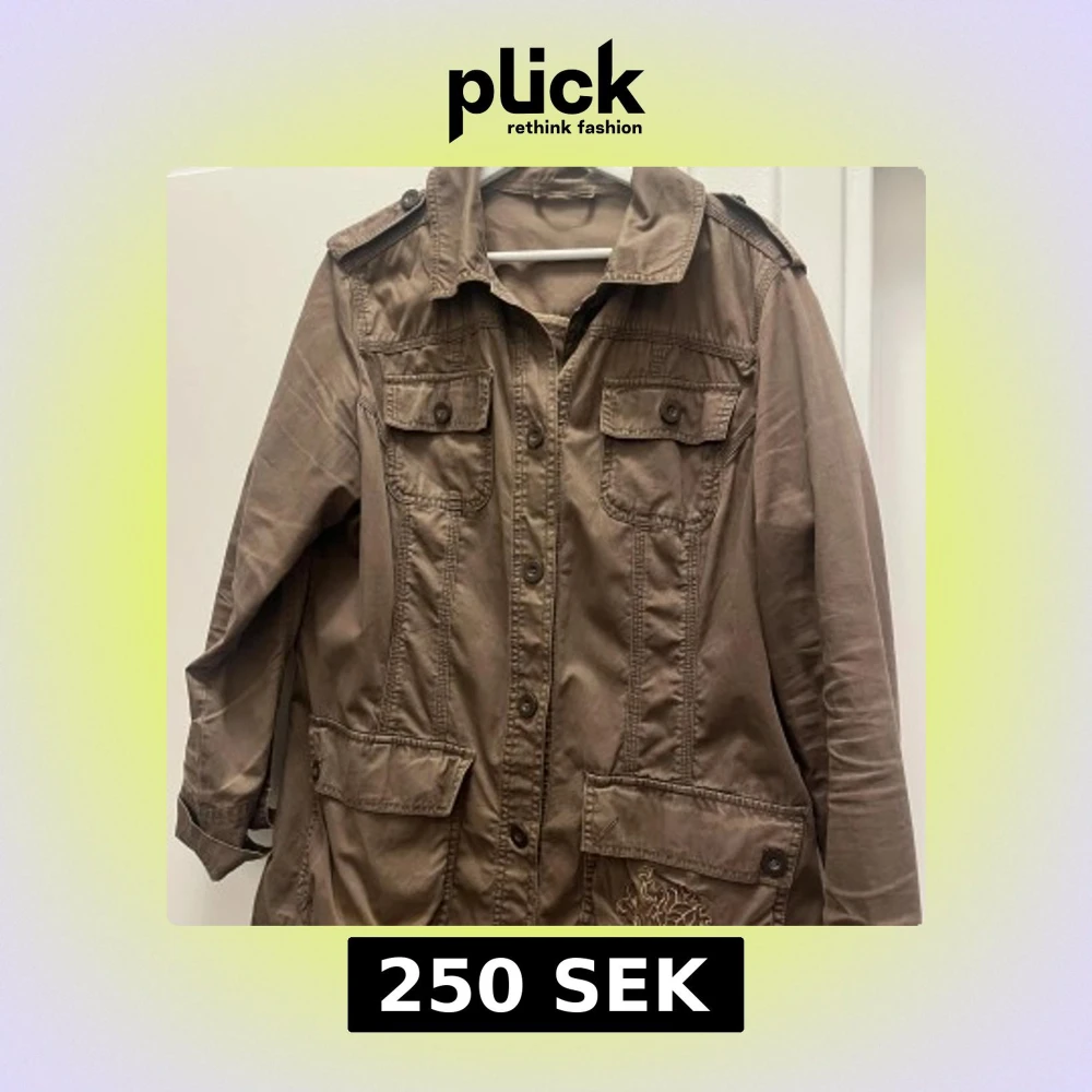 Snygg brun fieldjacka med fyra stora fickor framtill, axelklaffar och coolt broderi på ena fickan. Jackan har knäppning med knappar hela vägen och klassisk krage. Perfekt för dig som gillar en avslappnad och trendig stil.