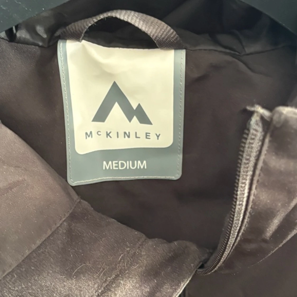 Svart vindjacka från McKinley i storlek medium. Jackan har huva, hel dragkedja framtill och är tillverkad i ett lätt syntetmaterial. Perfekt för blåsiga dagar och enkel att matcha med olika outfits.