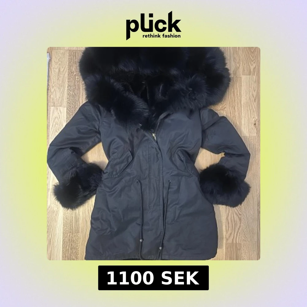 Svart parkas med pälsdetaljer