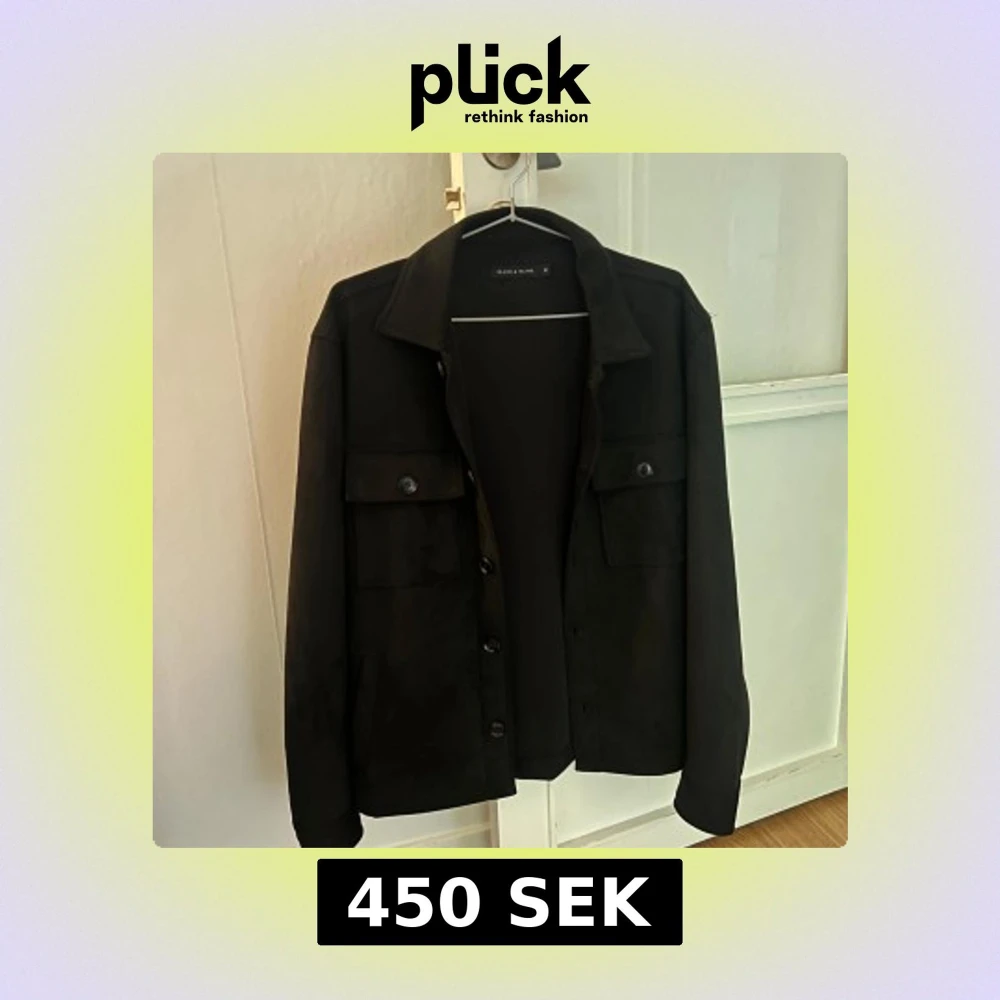 Svart overshirt från Brand Island i mjuk mocka med klassisk krage och bröstfickor med knappar. Jackan har lång ärm och knäppning framtill, perfekt för lager-på-lager och en clean look.