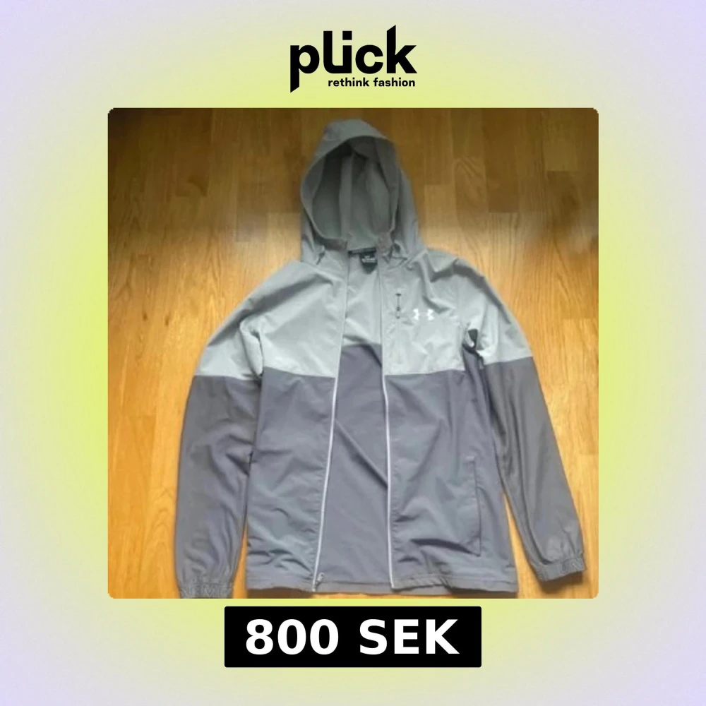Snygg tvåfärgad grå vindjacka från Under Armour med huva och dragkedja hela vägen. Jackan har lång ärm, praktiska fickor och en sportig look. Perfekt för dig som gillar stilren och funktionell design.