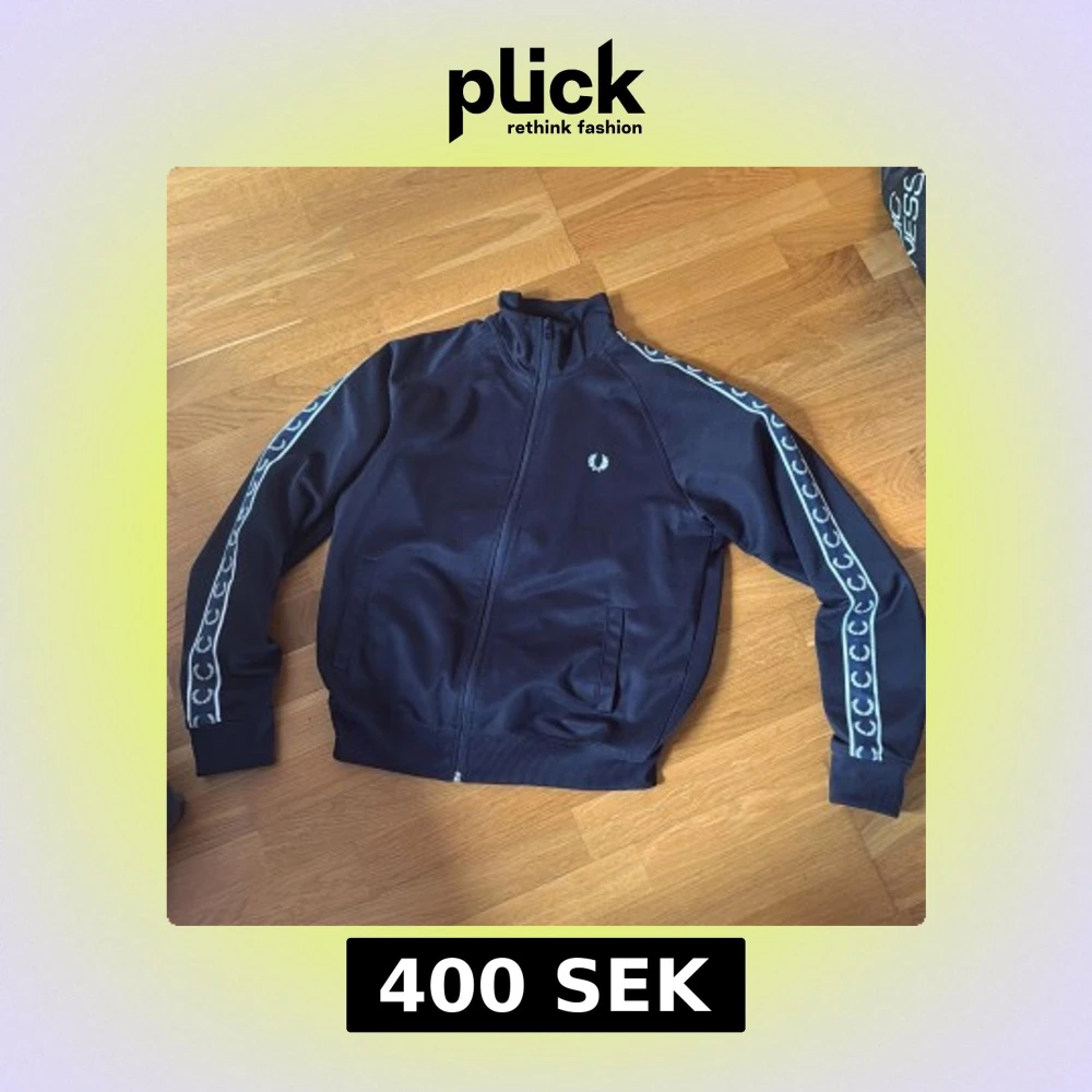 Snygg svart track jacket från Fred Perry med dragkedja framtill och vita detaljer längs ärmarna. Jackan har ribbade muddar, ståkrage och två fickor. Perfekt för en sportig och stilren look.
