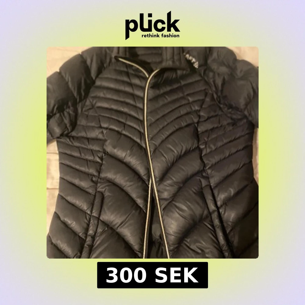 Säljer en svart dunjacka från Craft i storlek M. Jackan har snygg quiltad design, dragkedja framtill och långärmade ärmar. Perfekt för kyliga dagar och har en sportig look med diskreta detaljer.