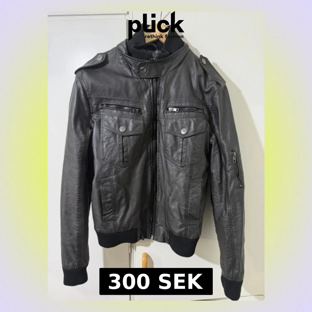 Snygg svart skinnjacka från Indigo Jeans i storlek S. Jackan har flera fickor med dragkedja och knappar, ribbade muddar vid ärmslut och midja samt coola axeldetaljer. Perfekt för dig som vill ha en edgy stil med streetvibe.