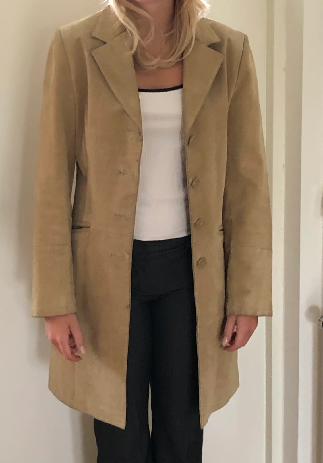 Vintage längre mocka jacka/kappa beige mocka. Storlek M Pris 250 kr