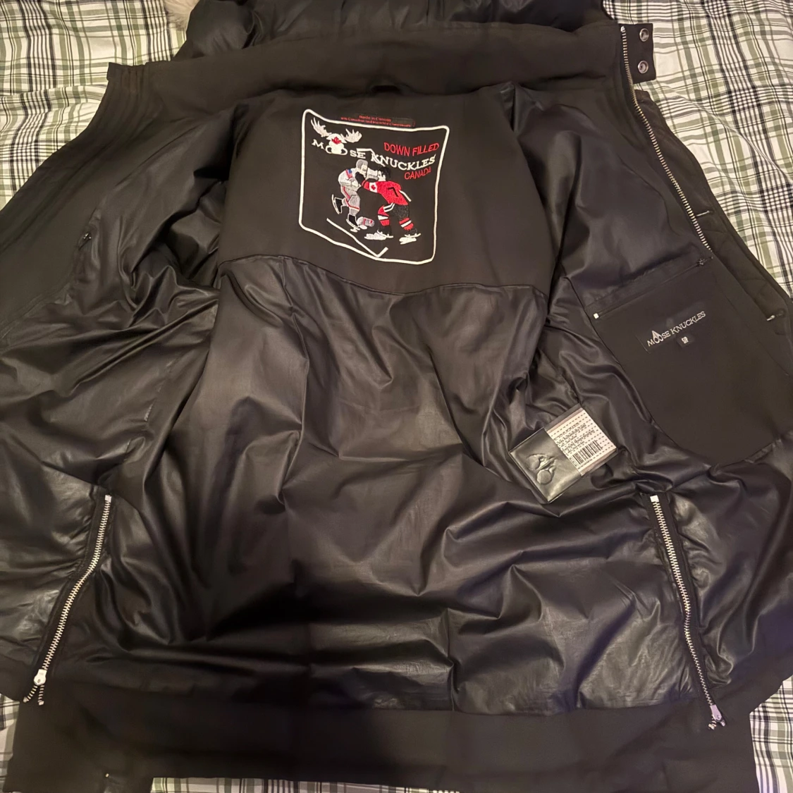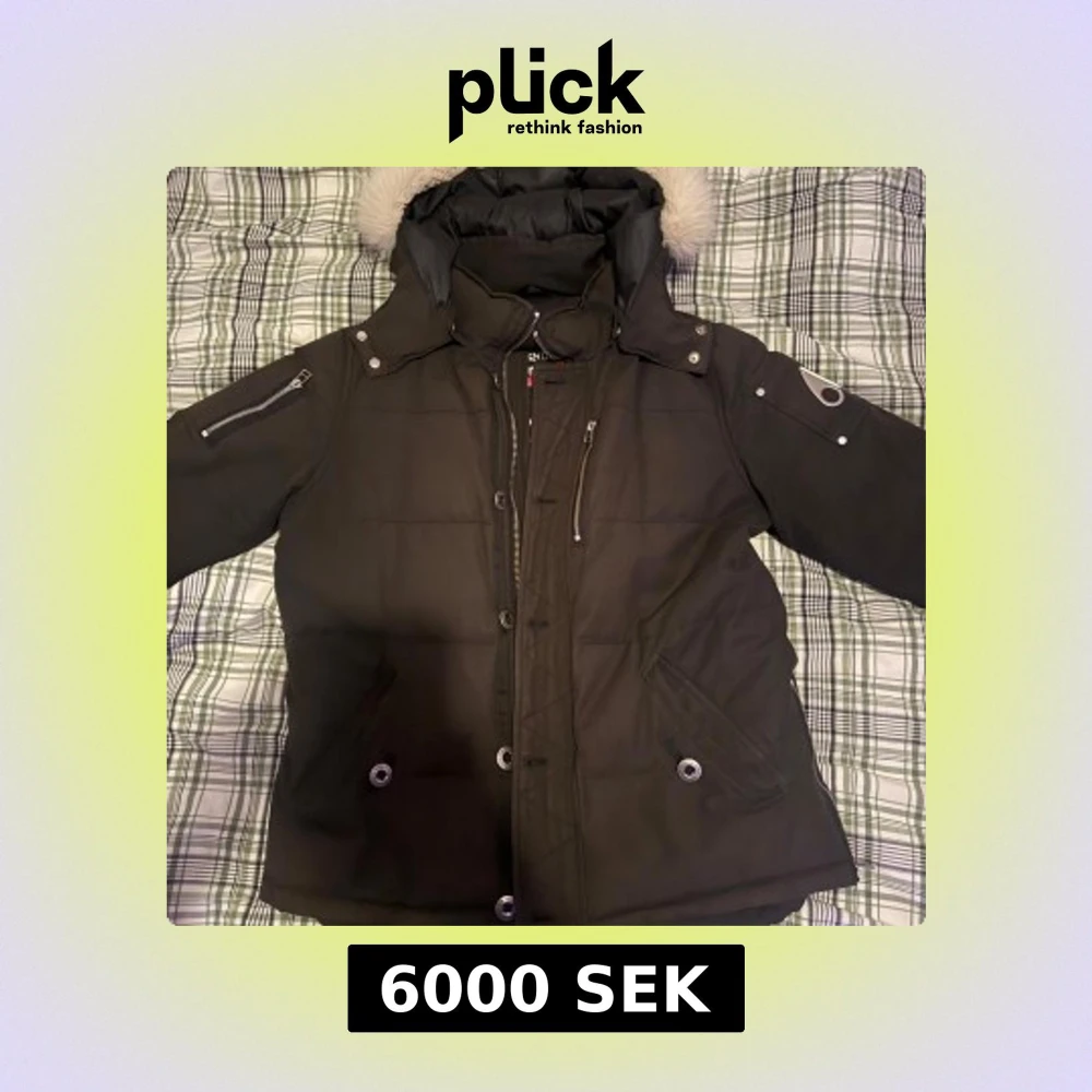 Säljer en svart dunjacka från Moose Knuckles med avtagbar huva och pälsdetalj. Jackan har flera dragkedjefickor och en broderad logga på insidan. Den är perfekt för kalla vinterdagar och har en stilren design med metalliska detaljer. Självklart jackan är äkta men tyvärr har jag kastat kvitton. Priset är ej skjutet i sten så kom med bud