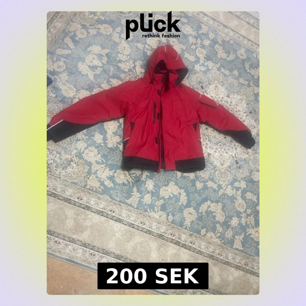 Säljer en röd vindjacka från Fristads i storlek M. Jackan har huva, svarta detaljer på ärmar och nederkant, samt vita reflexdetaljer. Utrustad med dragkedja, flera fickor och justerbar nederkant. Perfekt för kalla och blåsiga dagar.