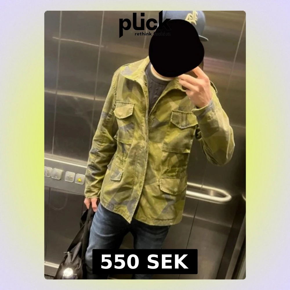 Säljer en armygrön parkajacka med klassiskt camouflage-mönster. Jackan har fyra stora fickor framtill, dragkedja och knappar. Jackan har en inne del som kan tas bort som gör den perfect för alla säsonger. Materialet är slitstark bomull och jackan har en cool militärstil som sticker ut.
