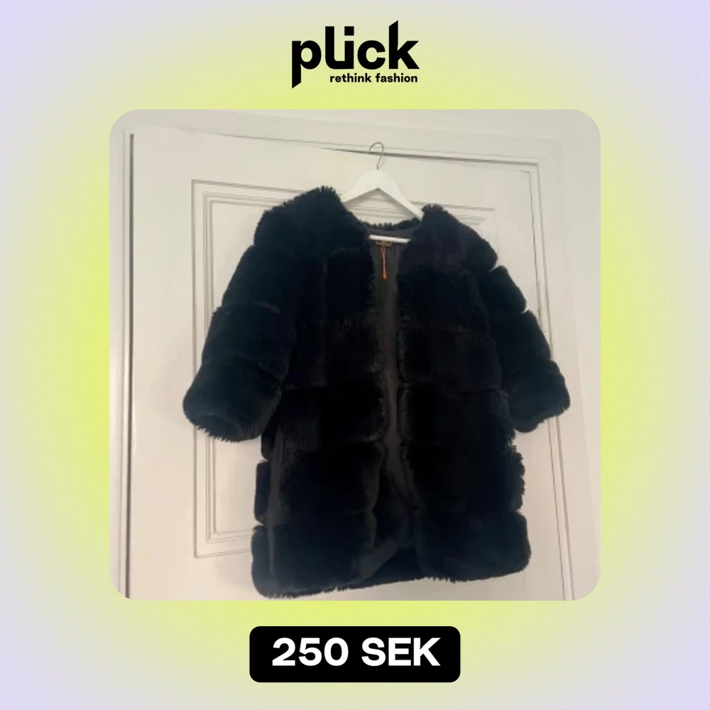 Svart jacka passar bra för vinter/ kall höst. 3/4 ärmar Slutar strax ovanför knäna. Kan stängas med hjälpa av hakarna (se bild)