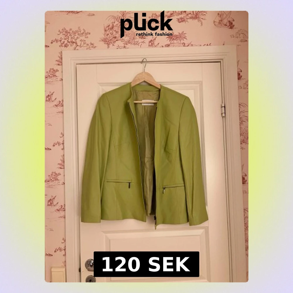 Ljusgrön skinnjacka med dragkedjor