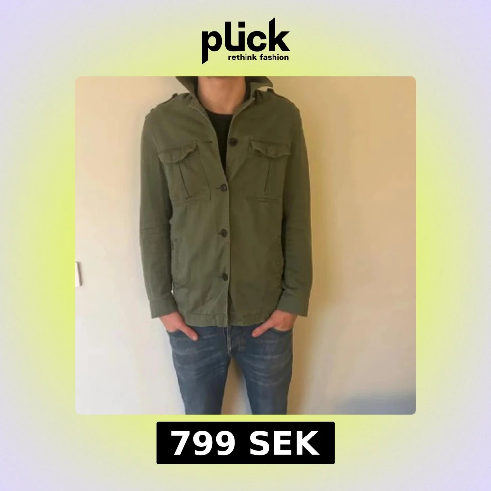Olivgrön overshirt med fickor