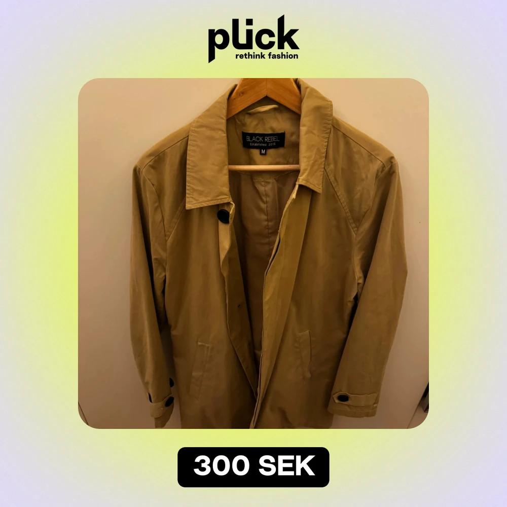 Säljer en stilren beige kappa från Black Rebel i storlek M. Rocken har en klassisk krage och knappar framtill. Perfekt för höst och vår med sin tidlösa design. Den är i mycket bra skick och passar både till vardags och lite finare tillfällen.