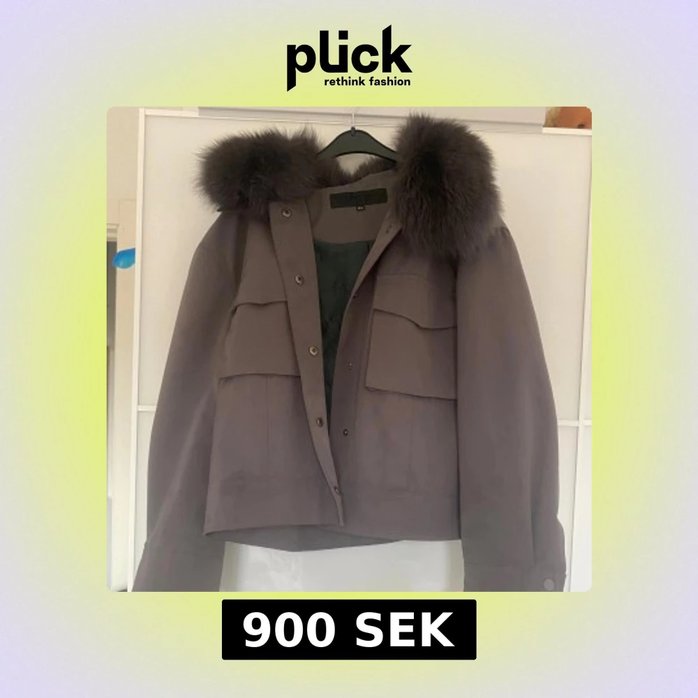 Säljer en grå jacka från Meotine med stor fluffig päls runt kragen. Jackan har två stora fickor framtill, knappar och quiltad insida i mörkgrönt. Perfekt för dig som vill ha en snygg och varm jacka med coola detaljer.
