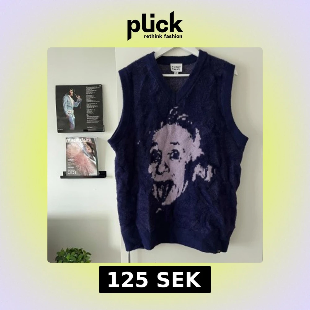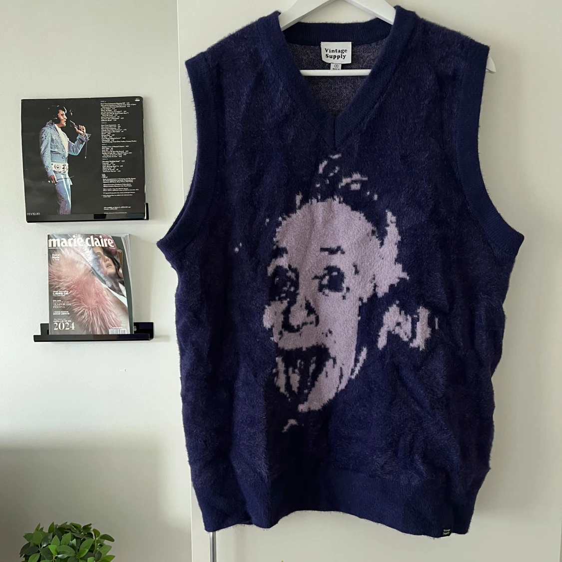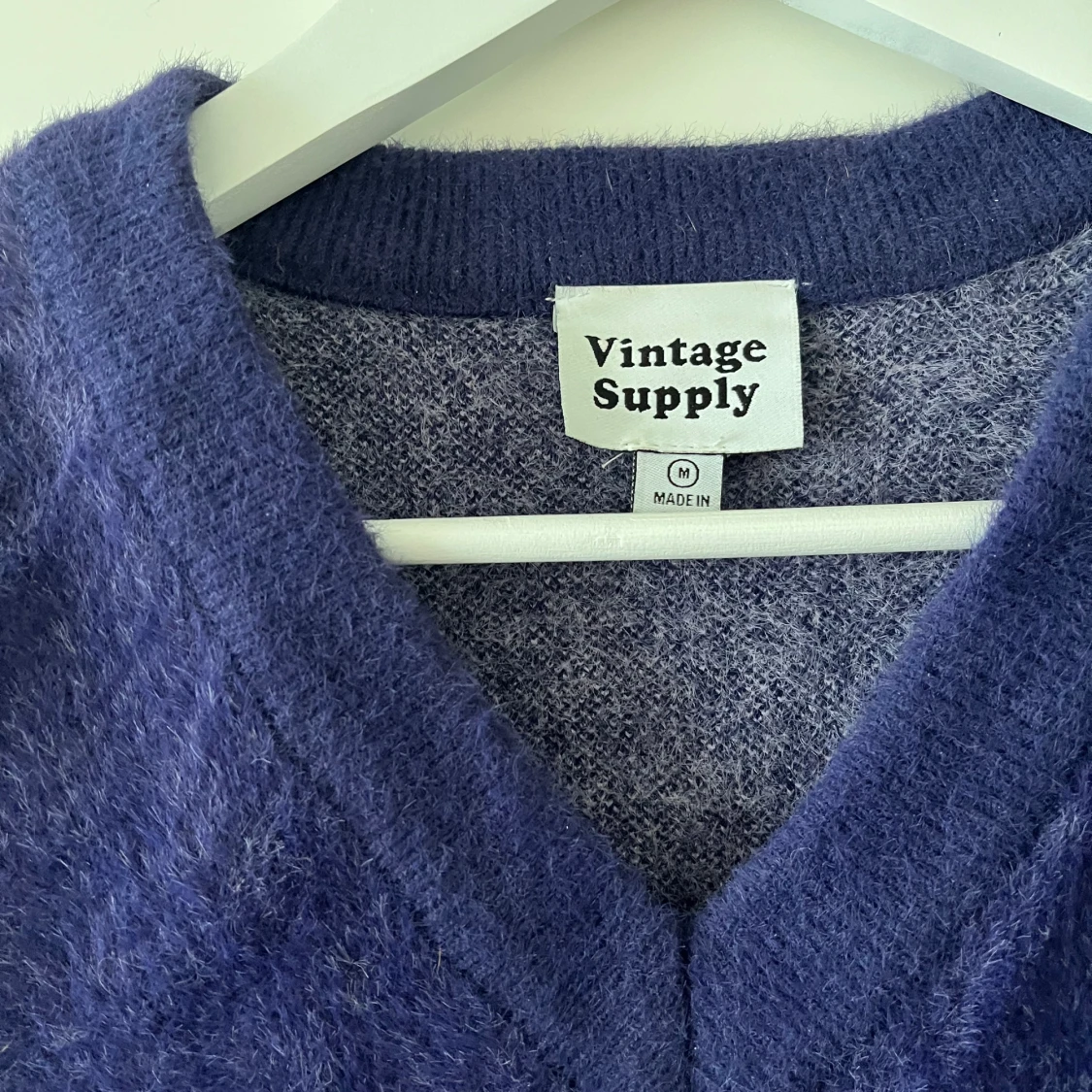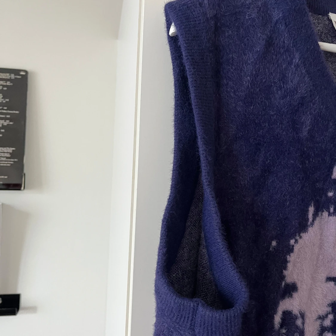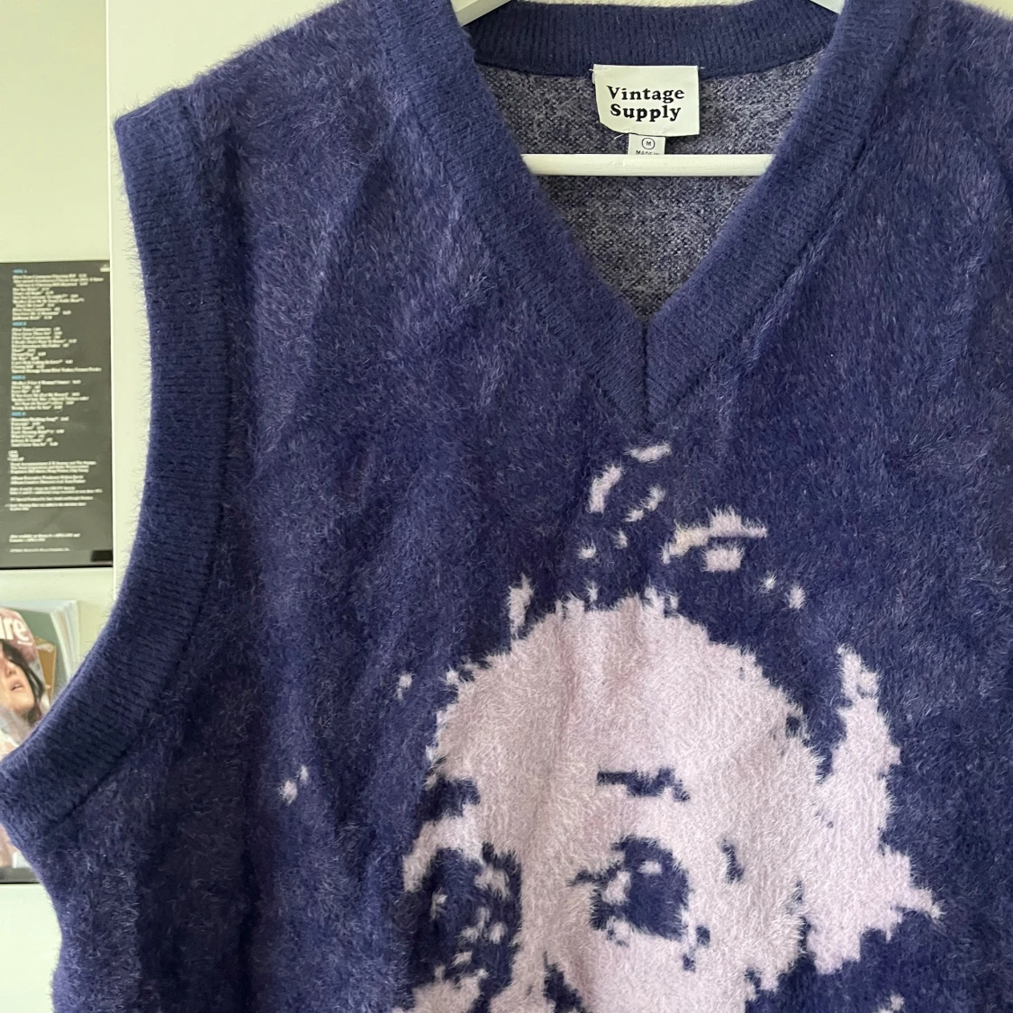 Mjuk och fluffig lila stickad väst från Vintage Supply med v-ringning och ett stort motiv framtill. Västen har breda ärmöppningar och en relaxed passform, perfekt att styla över en t-shirt eller skjorta för en cool look.