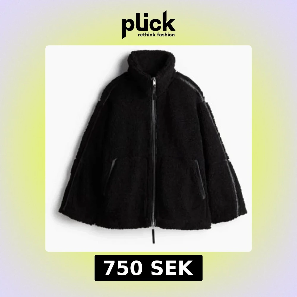 Mysig svart teddyjacka med dragkedja och hög krage. Jackan har långa ärmar och praktiska fickor framtill. Perfekt för kyliga dagar när du vill hålla dig varm och stilren.