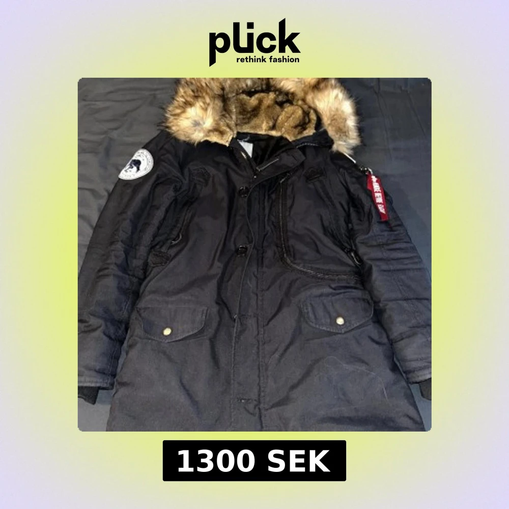 Säljer en svart parkajacka från Alpha Industries med en mysig fuskpäls på huvan. Jackan har långa ärmar och flera praktiska fickor med knappar. Perfekt för kalla dagar med sin varma och skyddande design. Nypris 1800kr