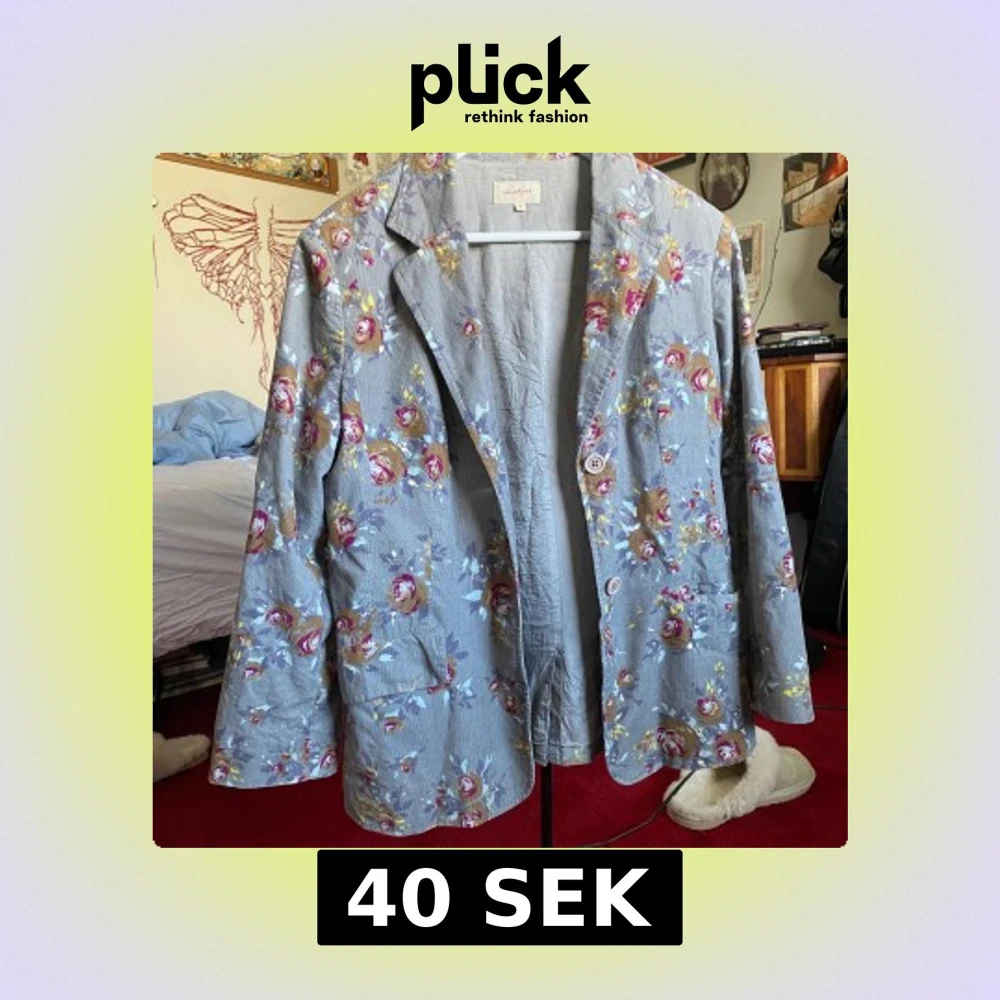 grå manchester kavaj med blommor, 100% bomull. jättesöt och bekväm. stl M skulle jag säga