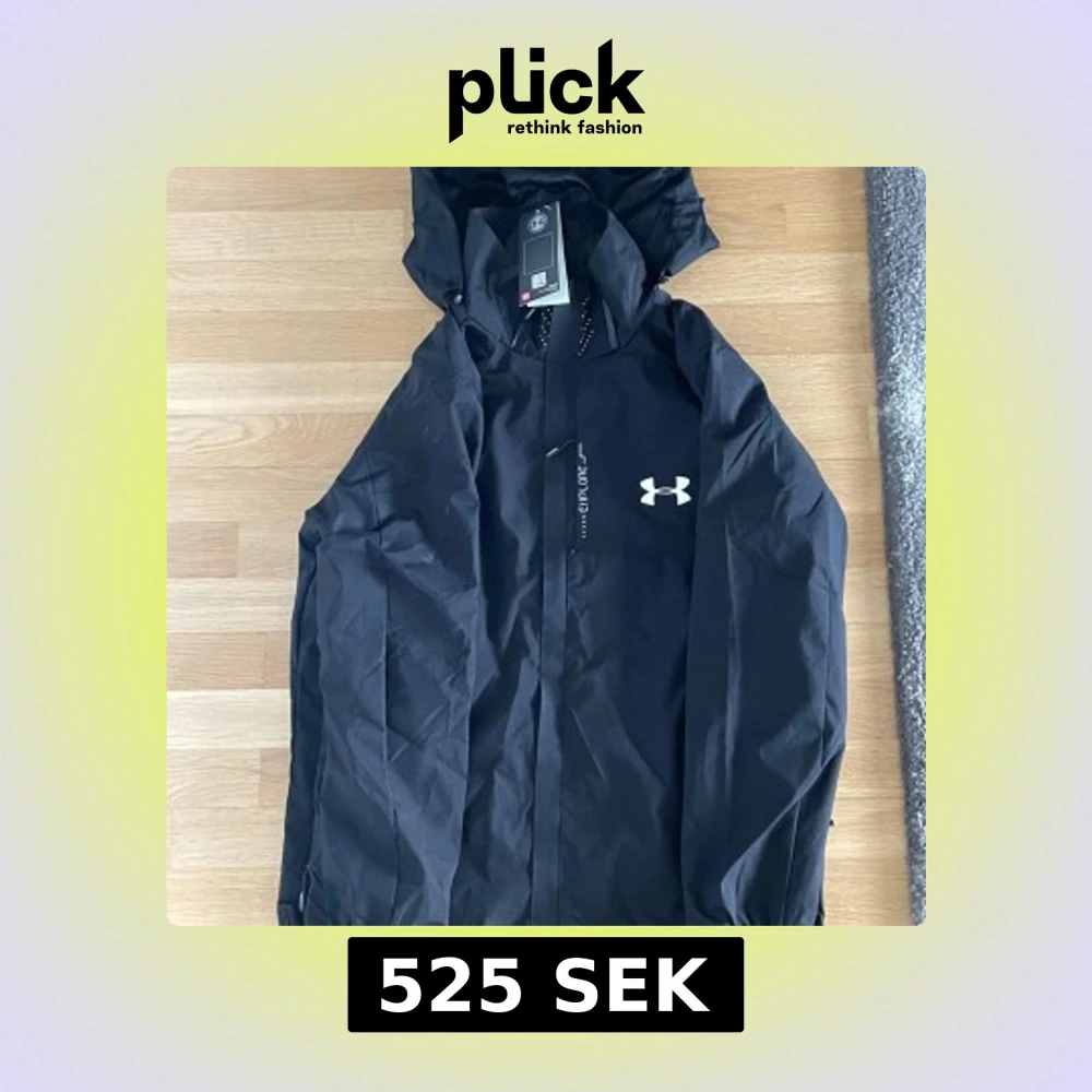 Lägg bud!!! Svart vindjacka från Under Armour med vit logga på bröstet. Jackan har huva, dragkedja och är tillverkad i lätt syntetmaterial. Perfekt för blåsiga dagar och sportiga outfits. Skriv om du vill ha fler bilder eller om du undrar något.