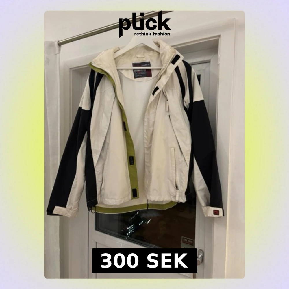 Säljer en svartvit vindjacka från Typhoon med huva och dragkedja. Jackan har coola kontrastpaneler, meshfoder och justerbar nederkant. Perfekt för dig som vill ha en sportig och funktionell look. Broderad logga på ärmen och praktiska fickor med dragkedja.