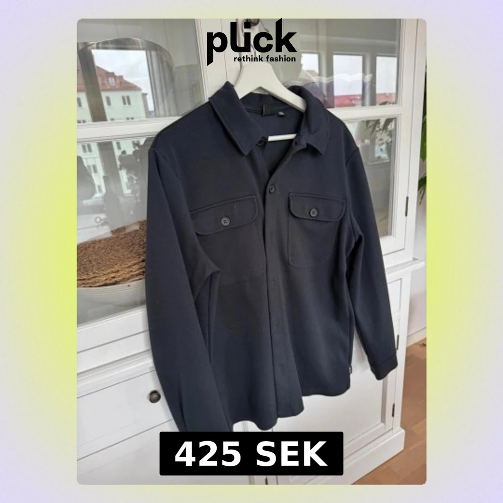 Säljer en svart overshirt från Only & Sons i storlek M. Jackan har två bröstfickor med knappar, klassisk krage och stängs med knappar framtill. Materialet är mjukt och känns som bomull, perfekt för lager på lager och en clean look.