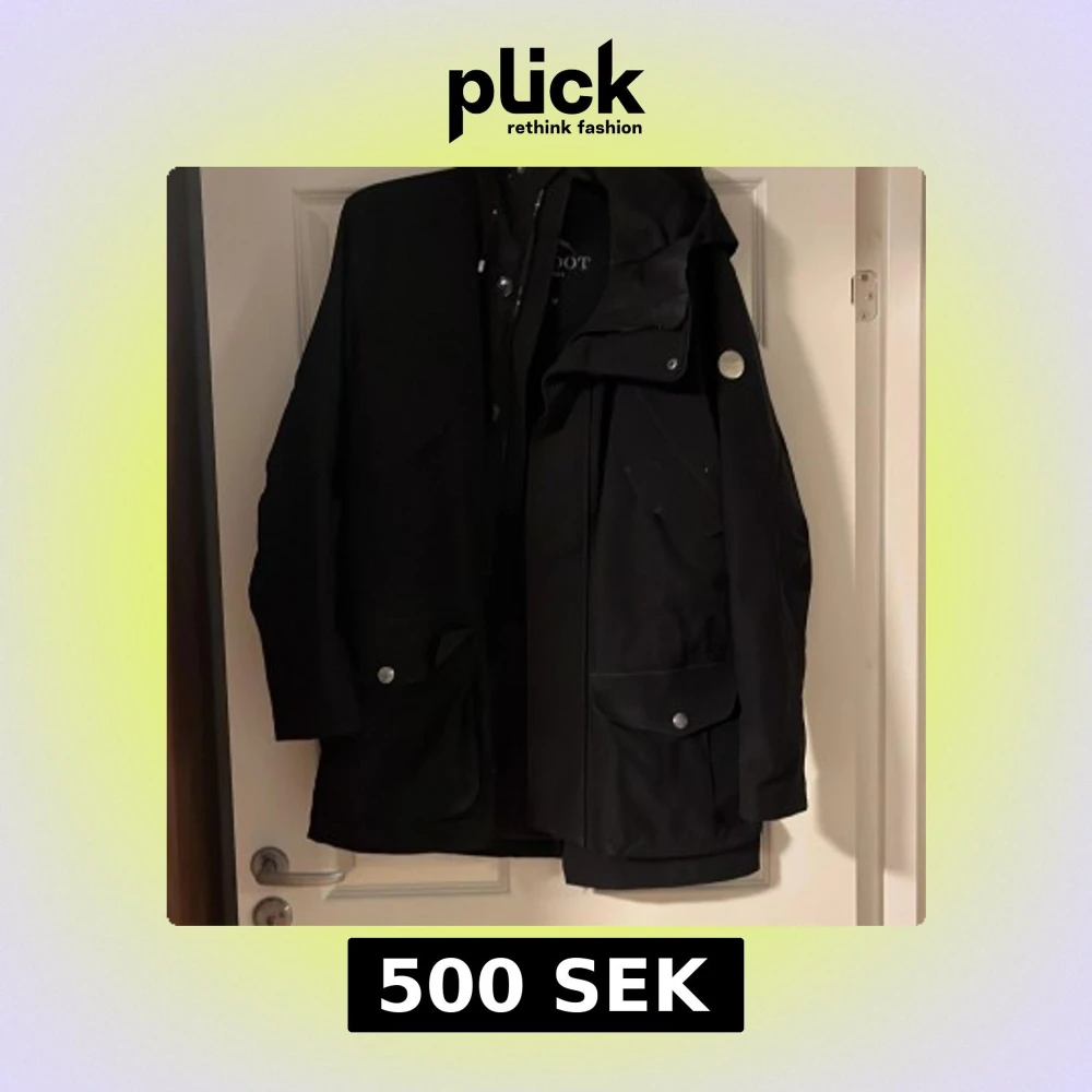 Snygg svart jacka från Snoot med huva och praktiska fickor. Jackan har en stilren design med knappar och dragkedja framtill. Perfekt för kyligare dagar.