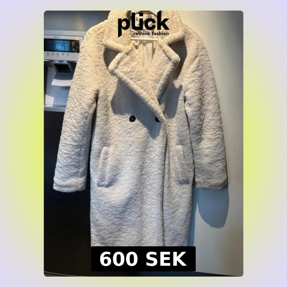 Säljer en beige teddykappa från K.Zell Paris i storlek M. Jackan har bred krage, två svarta knappar framtill och stora fickor på sidorna. Materialet är mjukt och fluffigt, perfekt för kyliga dagar. Jackan har en loose passform och är helfärgad utan mönster.