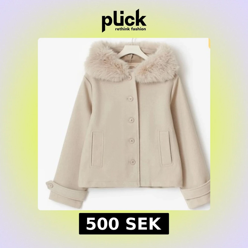 Snygg beige kappa med fluffig fuskpäls-krage och knappar framtill. Jackan har raka ärmar med knappdetalj vid ärmslut och två fickor fram. Perfekt för dig som vill ha en stilren och mysig look under kyliga dagar.