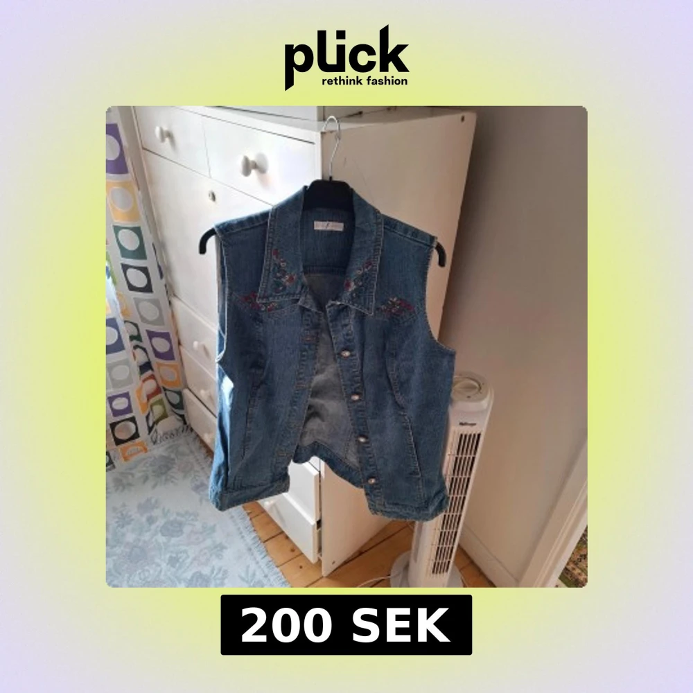 Säljer en blå jeansväst med fina broderade blommor vid axlarna och kragen. Västen har knappar framtill och klassisk jeanskrage. Perfekt att styla över en t-shirt eller klänning för en cool look.