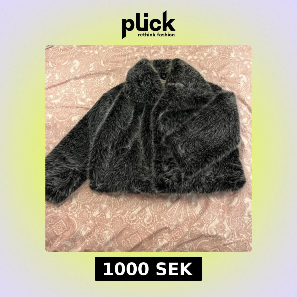 Grå pälsjacka. Med fickor och knappar så man kan stänga. Använd 2 gånger.