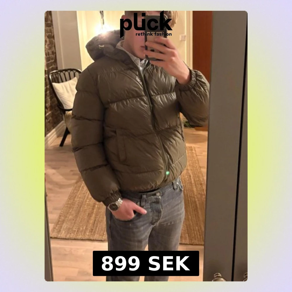 Säljer en sprillans ny olivgrön pufferjacka med huva och dragkedja framtill. Jackan har en klassisk pufferlook med breda kanaler och elastiska muddar vid ärmsluten. Perfekt för kyliga dagar och riktigt skön att bära. Storlek: M passar S