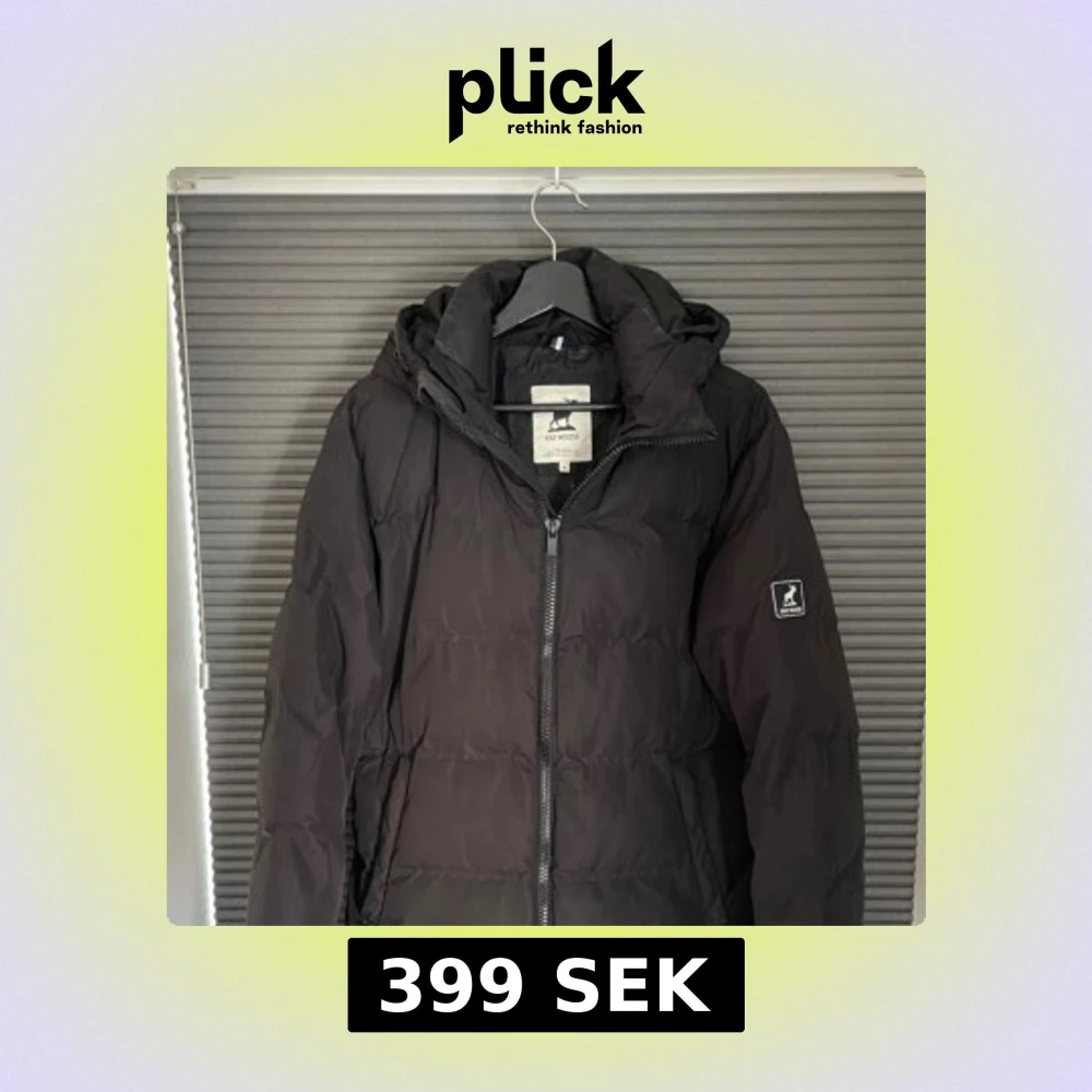 Säljer en svart dunjacka från Fat Moose med huva och dragkedja framtill. Jackan har en stilren design med diskret logga på ärmen och är perfekt för kalla dagar. Passformen är normal och jackan är vadderad för extra värme.
