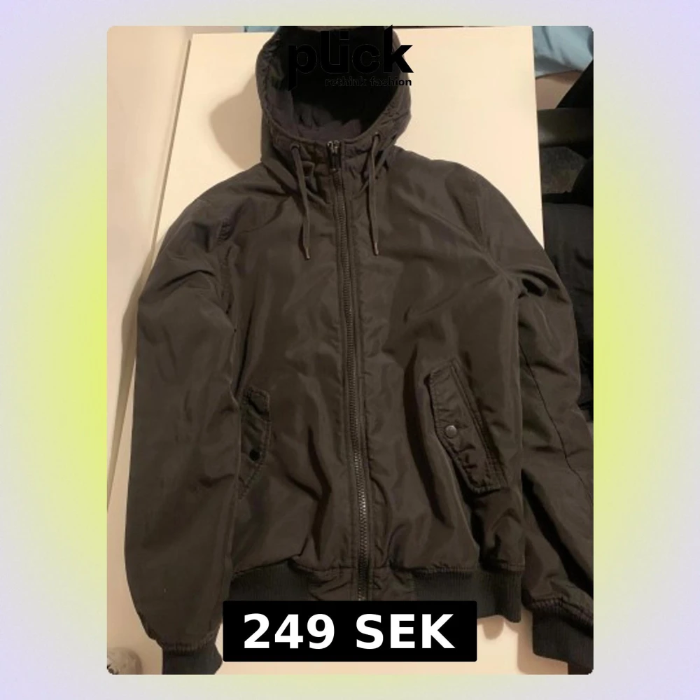 Svart bomberjacka från DB Supply med huva och snörning. Jackan har ribbade muddar, dragkedja framtill och två fickor med knappstängning. Insidan är fodrad med glansigt material som ger extra komfort. Perfekt för dig som gillar stilren och enkel look.