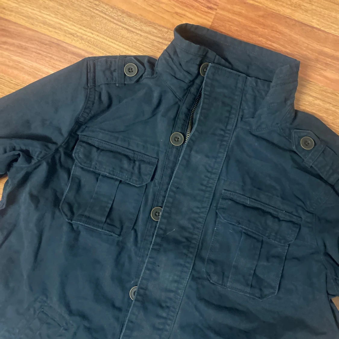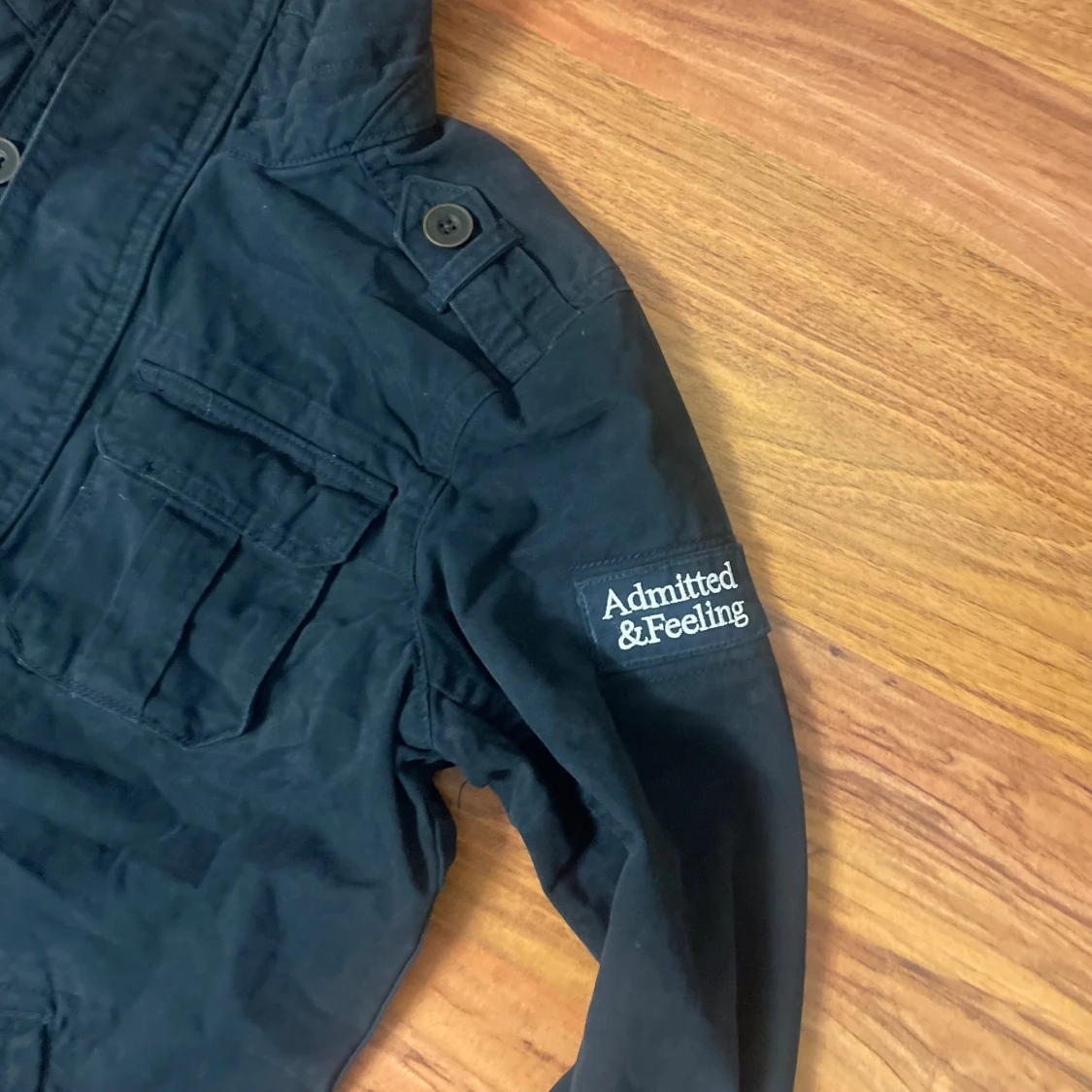 Svart parkajacka från Admitted & Feeling med hög krage, flera fickor med lock och knappstängning, samt broderad logga på ärmen. Jackan har både dragkedja och knappar framtill och är tillverkad i bomull. Snygga axeldetaljer med knappar ger en cool look.
