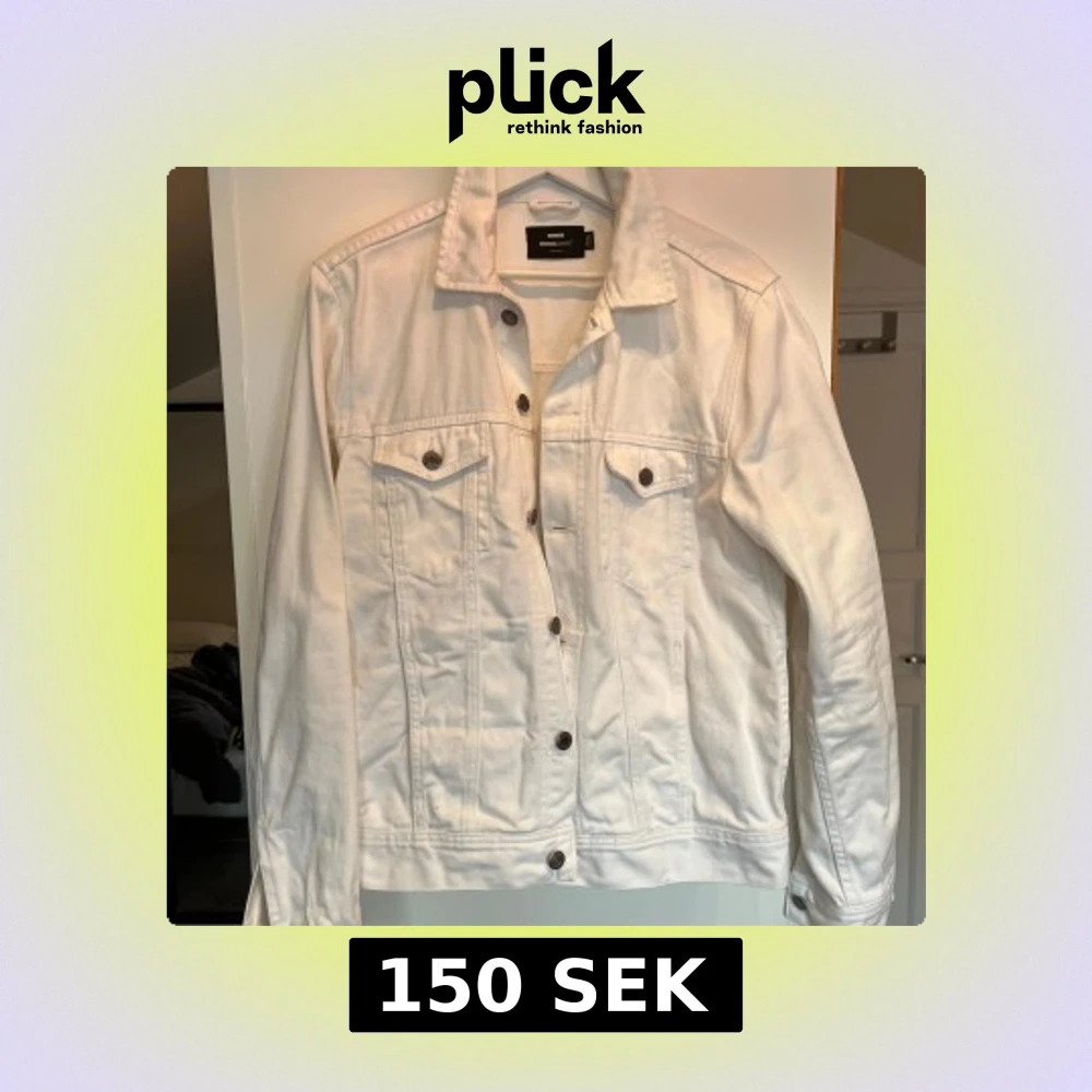 Säljer en stilren vit jeansjacka från Dr. Denim. Jackan har knappar framtill och två bröstfickor med knappstängning. Perfekt för en avslappnad look.