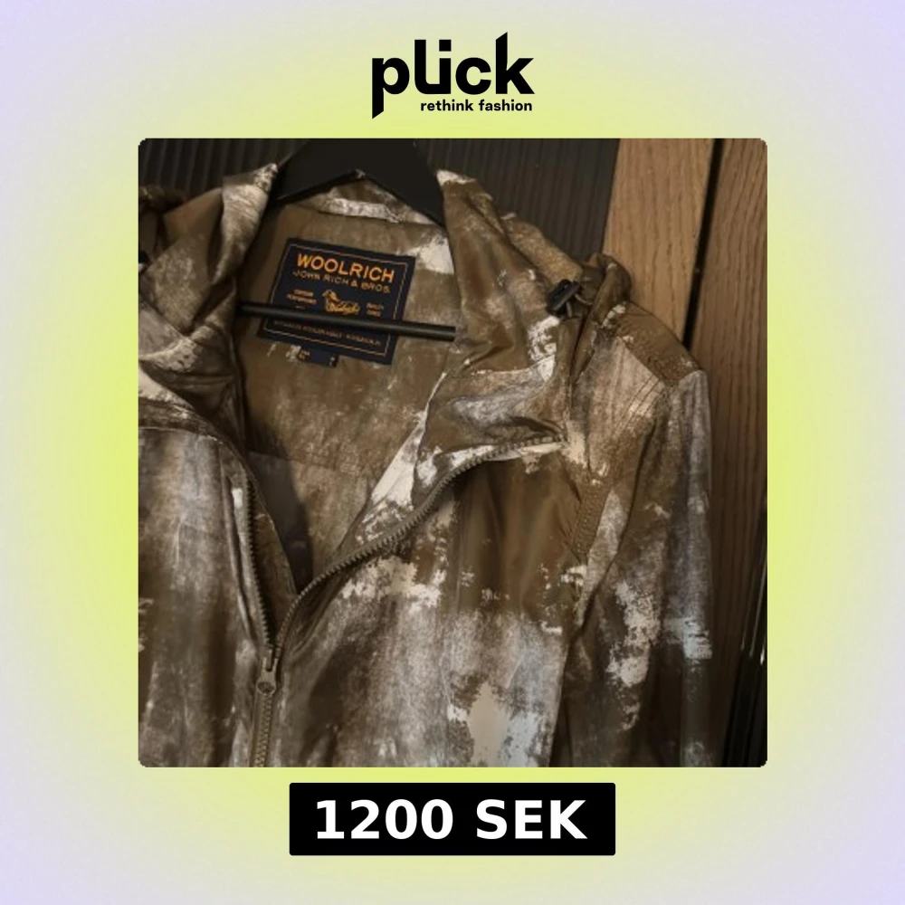 Säljer en cool mönstrad jacka från Woolrich i bruna och vita toner. Jackan har en dragkedja framtill och en huva. Perfekt för en avslappnad stil.
