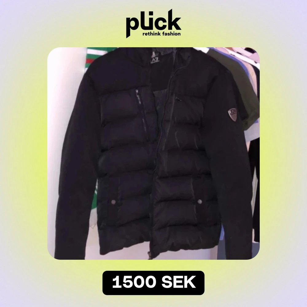Säljer en svart jacka frn EA7. Jackan har en quiltad design med dragkedja och knappar framtill. Perfekt för kalla dagar med sin varma och bekväma passform.