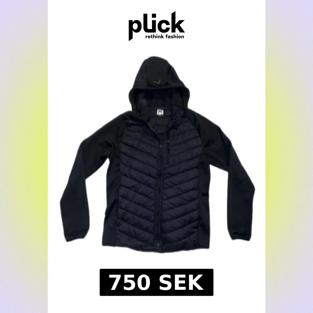 Svart pufferjacka med snygg quiltad front och huva. Jackan har dragkedja hela vägen, långärmade släta ärmar och sidofickor. Materialet är en mix av polyester och syntet, vilket gör den lätt och skön. Perfekt för dig som gillar stilren och sportig look.