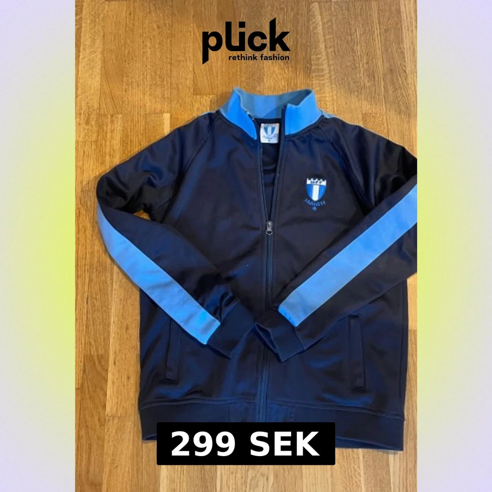 Mörkblå officiell träningsmerch från Malmö FF med ljusblå detaljer på krage och ärmar. Jackan har dragkedja framtill och klubbens broderade logga på bröstet. Tillverkad i polyester, perfekt för fotboll och sportiga dagar. Nypris: 899 Mitt pris: 299