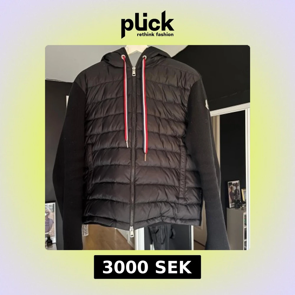 Moncler cardigan med luva i riktigt bra skick. Inga skador alls. Den är i storlek S. Perfekt nu inför vår och sommar! Hör av dig vid frågor eller fler bilder.