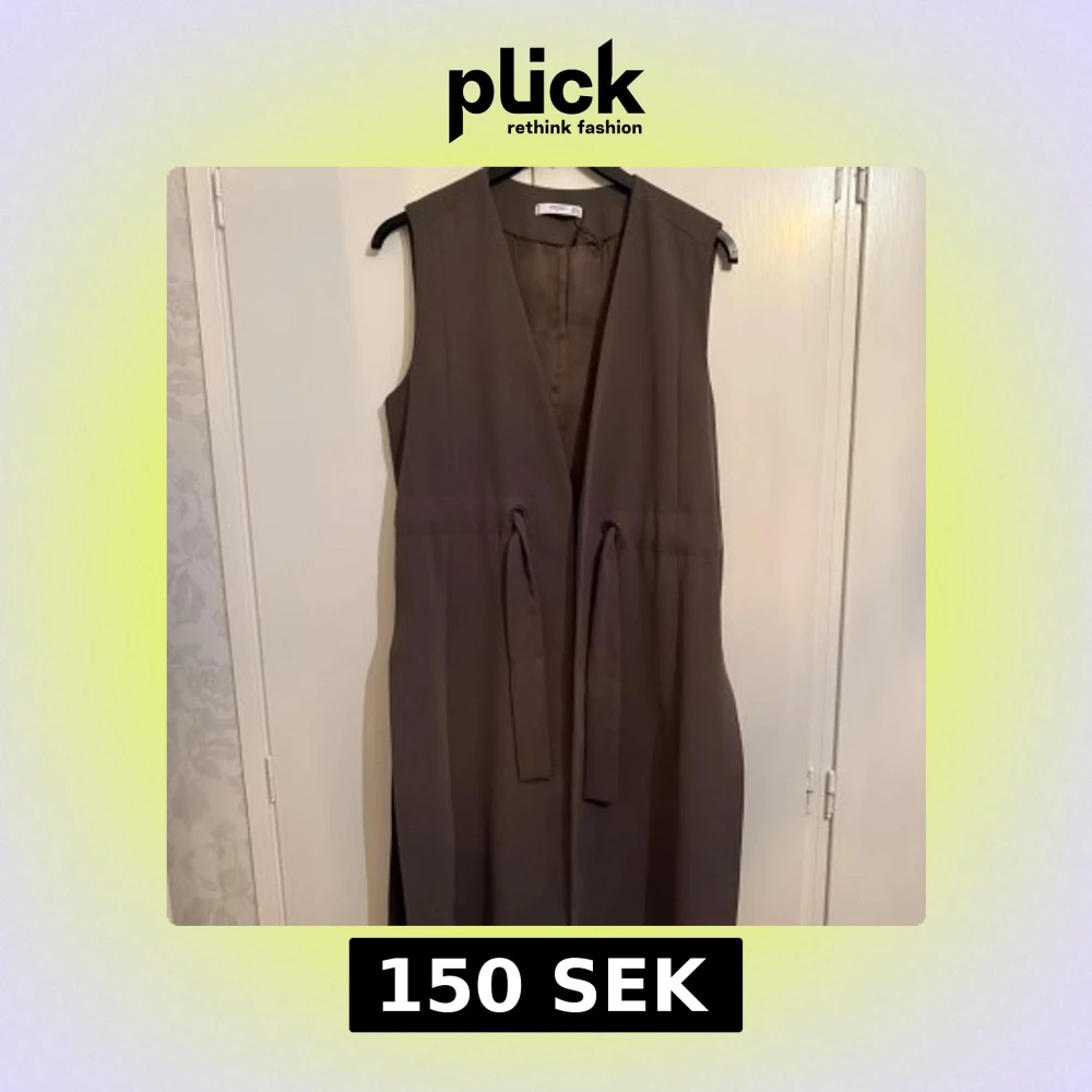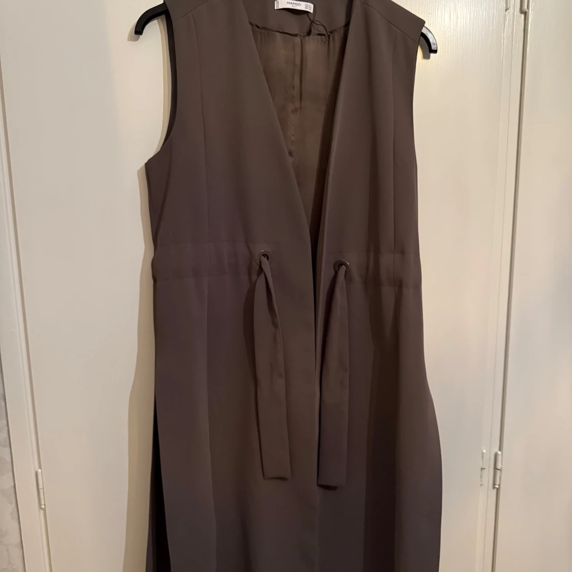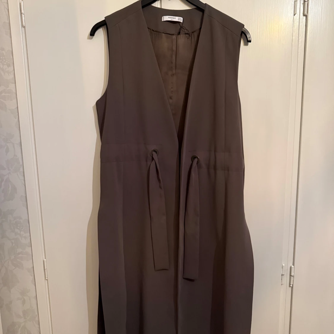Säljer en stilren brun väst från Mango med långa knytband i midjan. Västen är ärmlös, har en rak passform och är perfekt för lager-på-lager-stil. Knappt använd, passar även storlek L