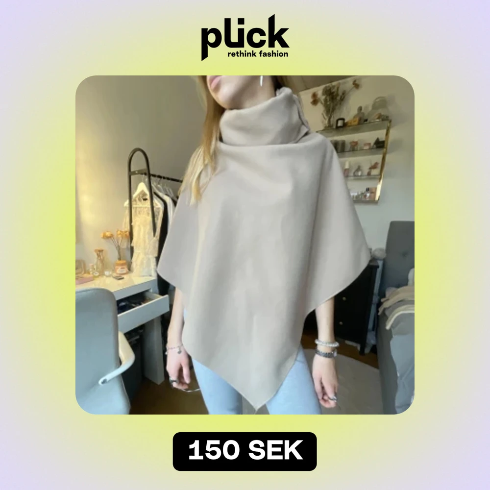 as snygg beige poncho men typ ish en krage och knappar på sidan! Har en lite anmärkning på innersidan men annars fin💘
