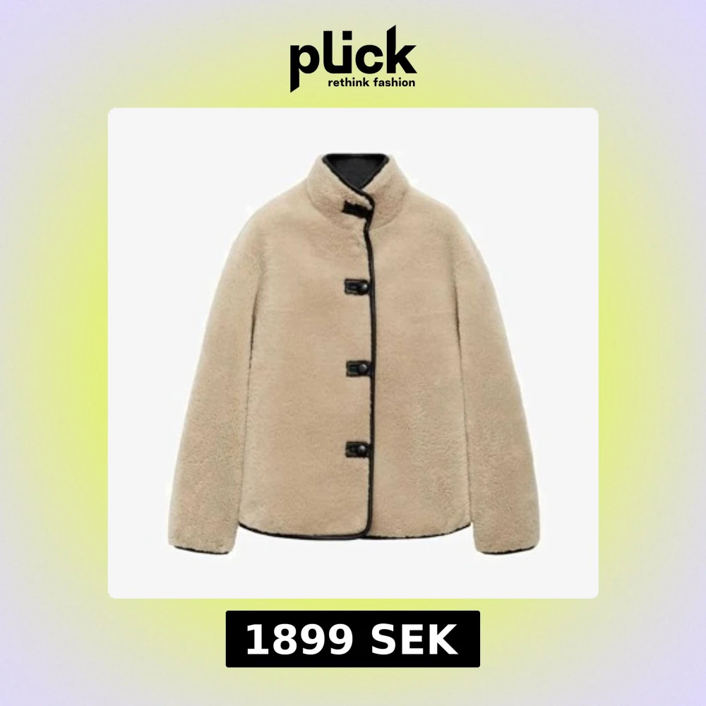 Mysig beige teddyjacka med hög krage och svarta kantdetaljer. Är från mango och är helt slutsåld överallt, den är helt ny