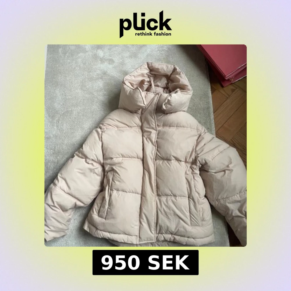 Säljer en beige pufferjacka med stor, fluffig luva och breda kanaler. Jackan har dragkedja och tryckknappar framtill, samt två sidofickor. Den är oversized och har långa ärmar, perfekt för kalla dagar. Materialet är syntet och jackan har en riktigt mysig vibe. Nypris 1700kr