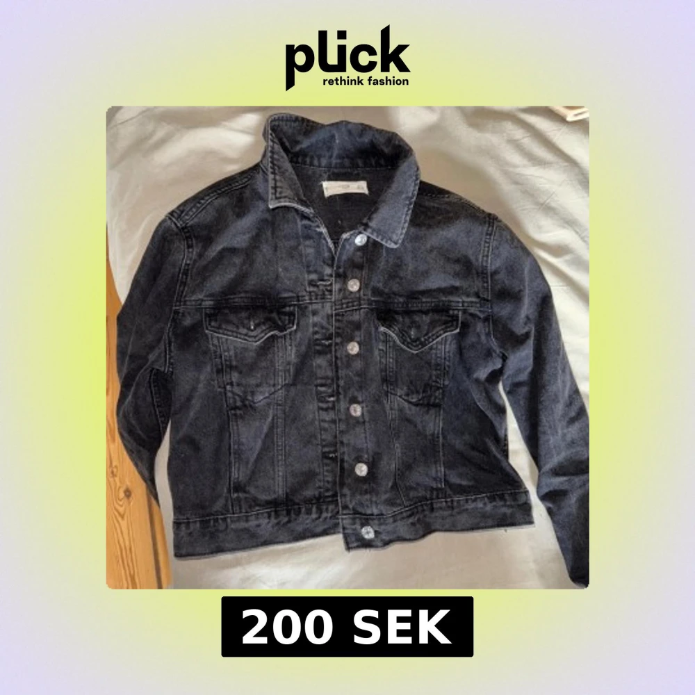 Säljer en svart jeansjacka från Mango med klassisk krage och silverfärgade knappar framtill. Jackan har två bröstfickor med lock och en croppad passform som ger en trendig look.
