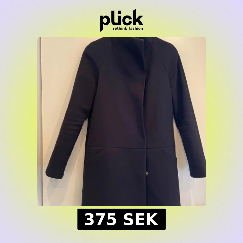 Stilren svart kappa från Mango Suit i storlek S. Jackan har dold dragkedja och tryckknappar i guld, samt två sneda fickor framtill. Klassisk rak modell med lång ärm och hög krage. Perfekt för dig som gillar minimalistisk och clean stil. En knapp saknas samt en öppen söm på insidan av ens ärmen.