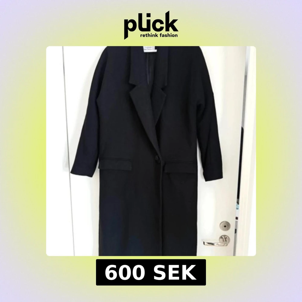 Svart lång kappa från Mango Suit collection med klassisk krage och enkel knappstängning framtill. Kappan har raka, långärmade ärmar och två fickor med lock. Ullblandning med 70% ull, superfint skick och lyxig! Är tyvärr lite för liten för mig.