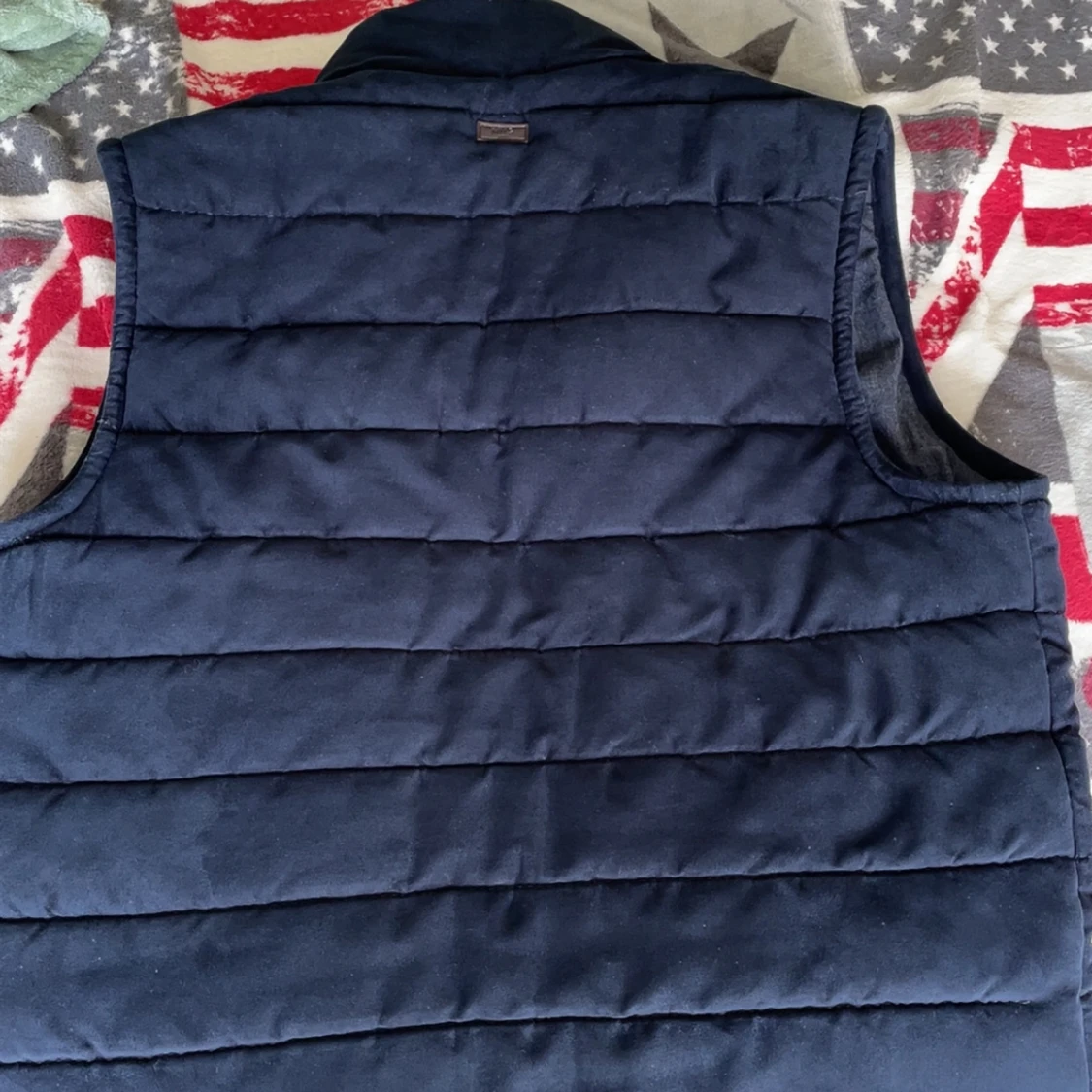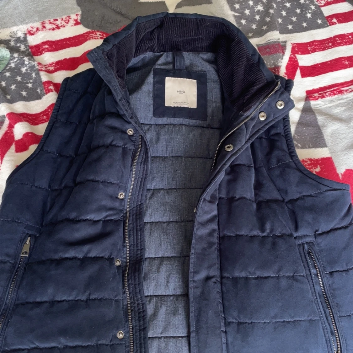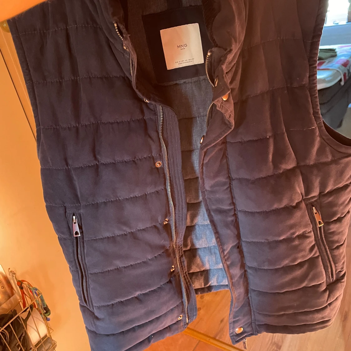 Stilren mörkblå mocka väst från Mango med quiltat mönster och dragkedja framtill. Den är så gott som ny, Västen har två fickor med dragkedja och hög krage. Perfekt för lager-på-lager och passar till många olika outfits. Priset är såklart förhandlingsbart👑🔥